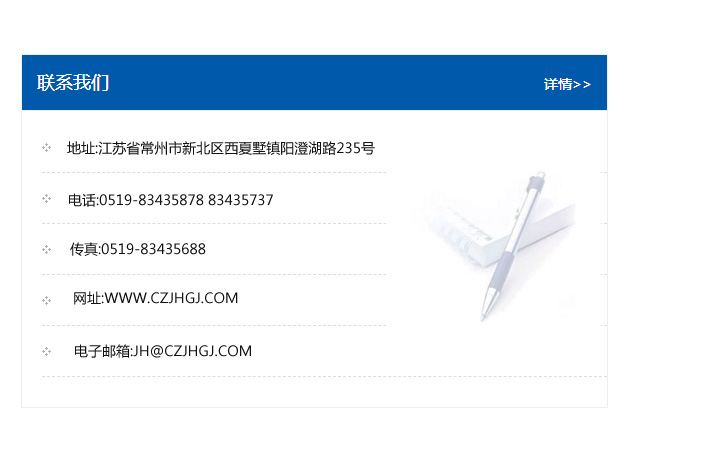 傳真:0519-83435688    郵編:213135    網址:WWW.czjhgj_com.nanjingzhongtai.com    電子郵箱:JH@czjhgj_com.nanjingzhongtai.com